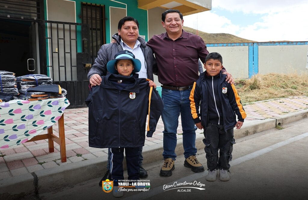(Lunes 15 de setiembre 2025) Reafirmando su compromiso con el fortalecimiento de la educación inicial en la provincia, el alcalde provincial de Yauli – La Oroya, Dr. Edson Crisóstomo Ortega, realizó la entrega de buzos deportivos a los estudiantes de la Institución Educativa Inicial N.° 30934 “Corazón de María”, ubicada en el centro poblado de San Miguel Distrito de Yauli