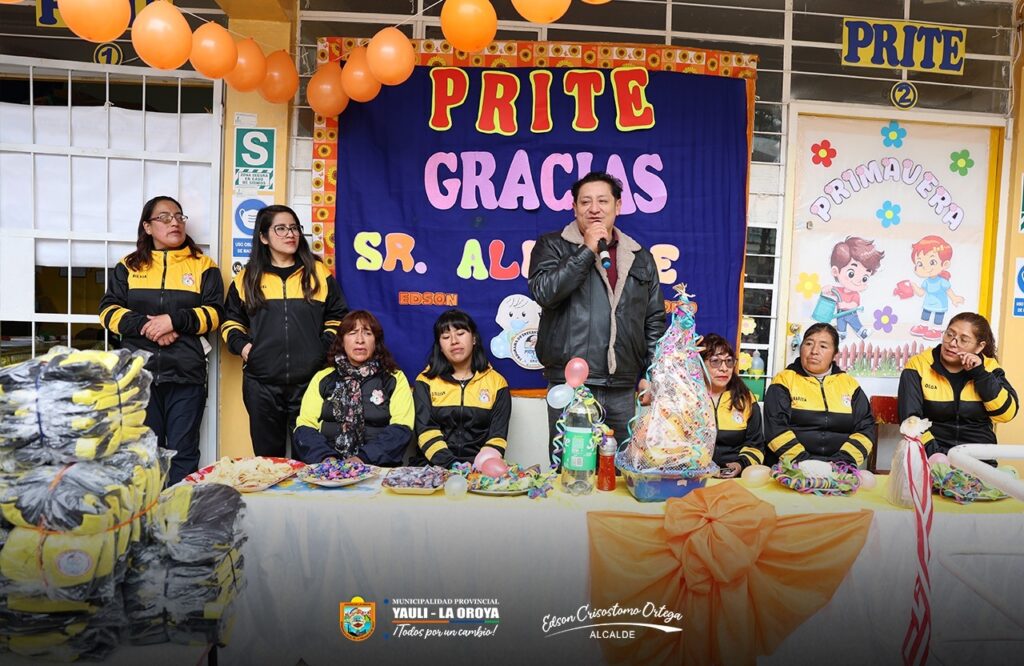 (Jueves 04 de setiembre 2025) Con el firme compromiso de promover una educación inclusiva y equitativa, el alcalde provincial de Yauli – La Oroya, Edson Crisóstomo Ortega, realizó la entrega de 54 buzos deportivos a los estudiantes de la Institución Educativa Inicial N° PRITE Juan Pablo II.